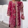 The formal outfit features an embroidered organza long shirt, lending it an ethnic look. The churidar is made of maroon embroidered Korean raw silk, giving it a traditional touch. The organza dupatta boasts beautiful designs and is complemented by sequins-embroidered borders. This outfit is a perfect blend of traditional and contemporary elements