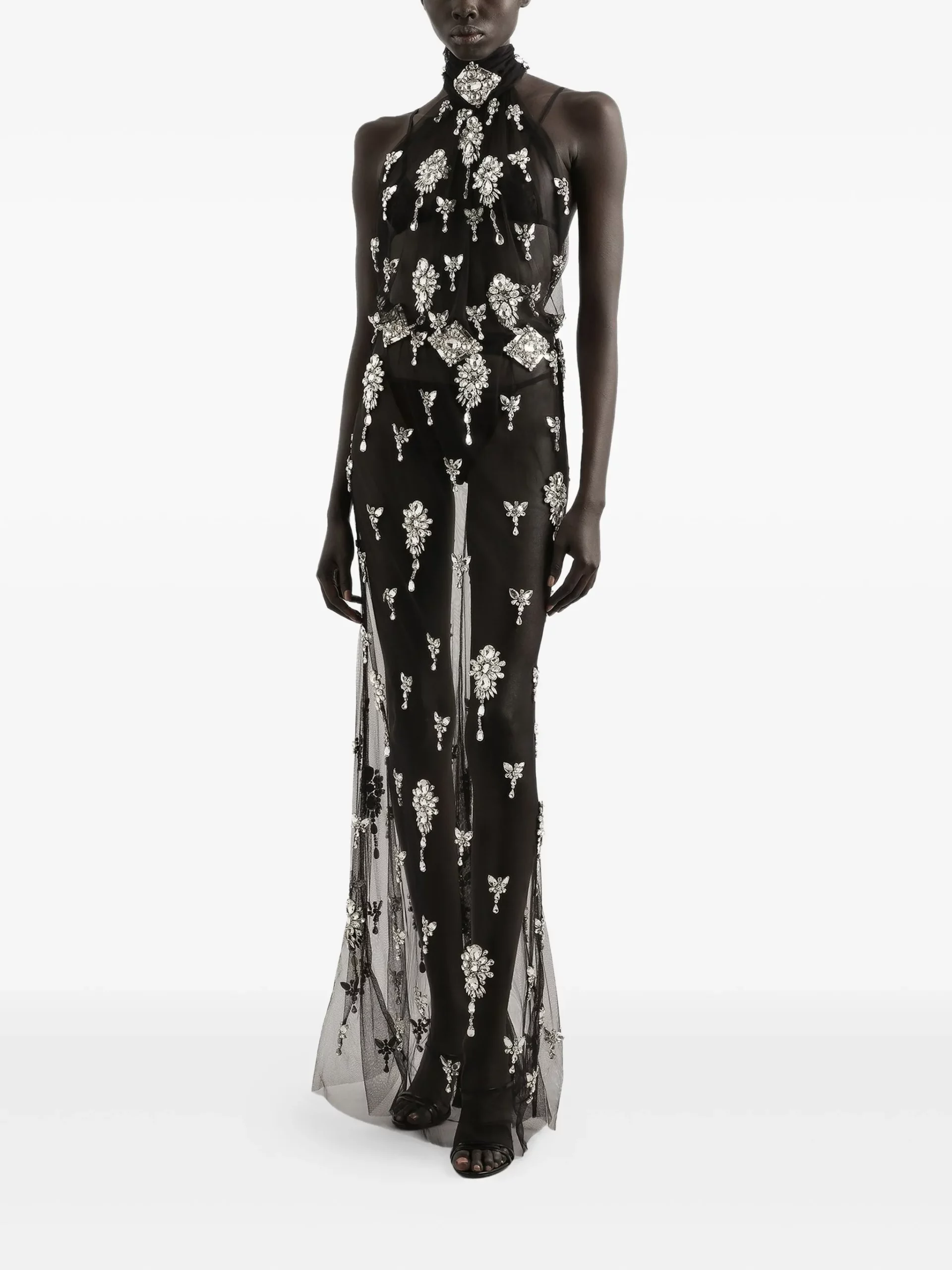 hinestones-embellished halter-neck maxi dress