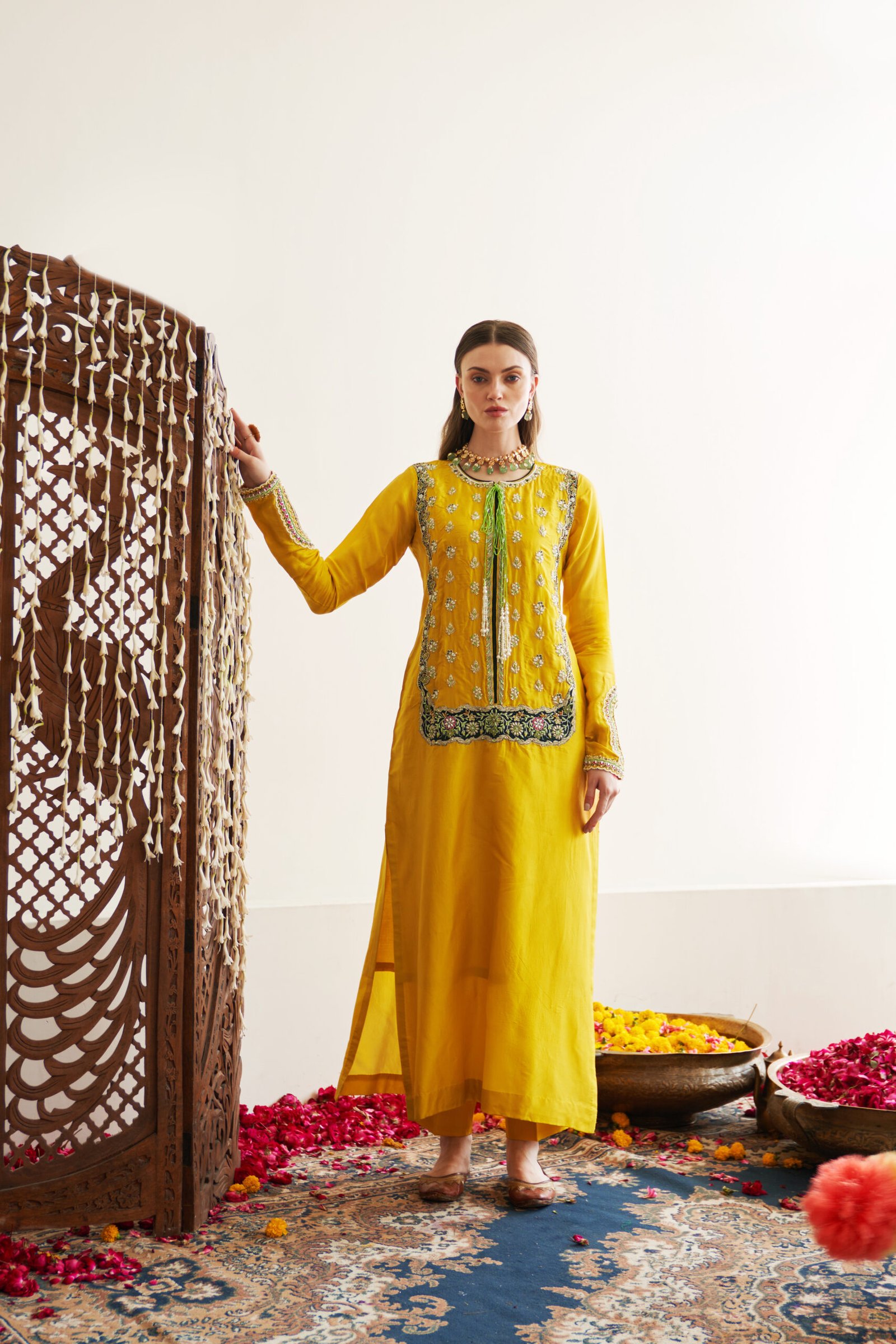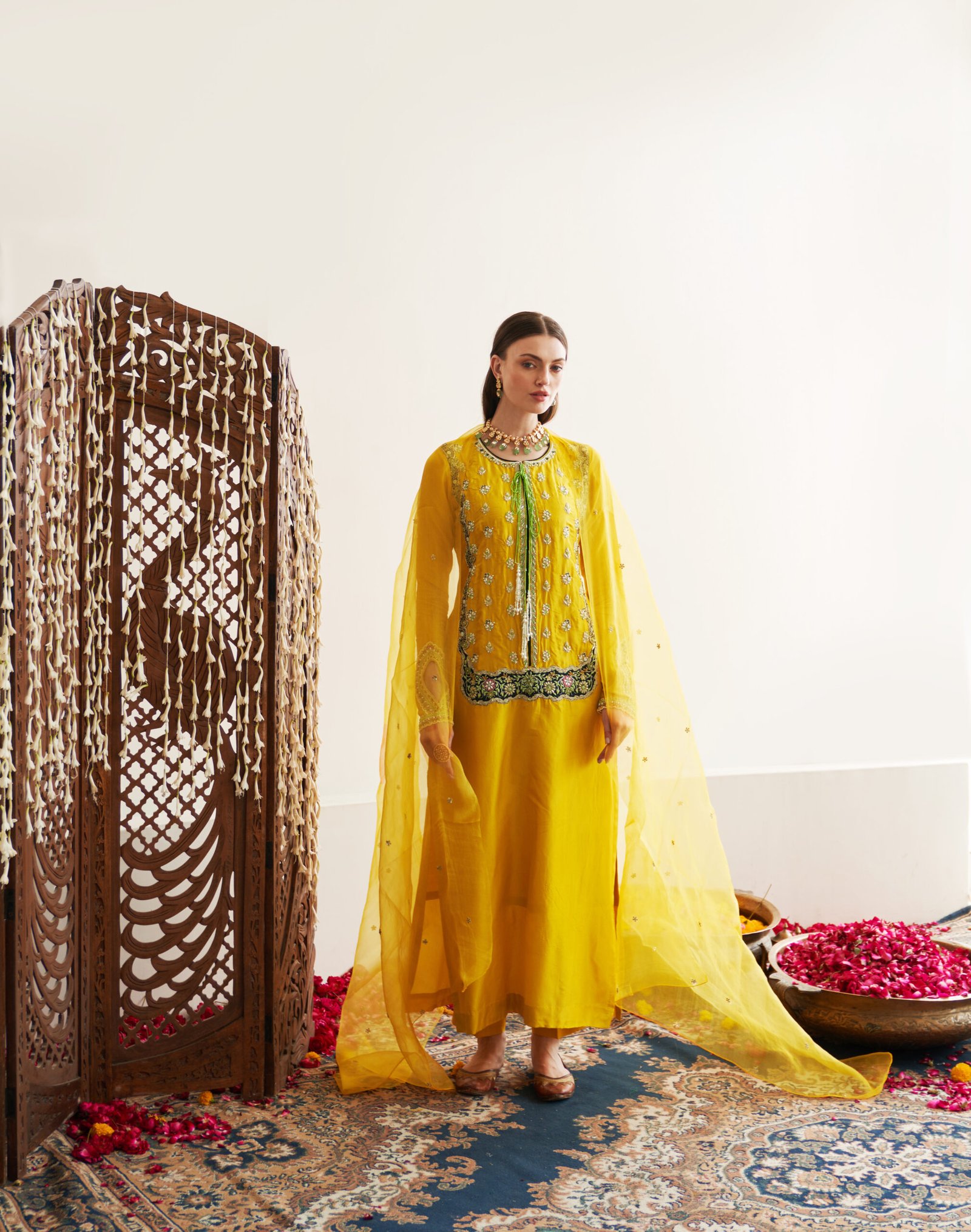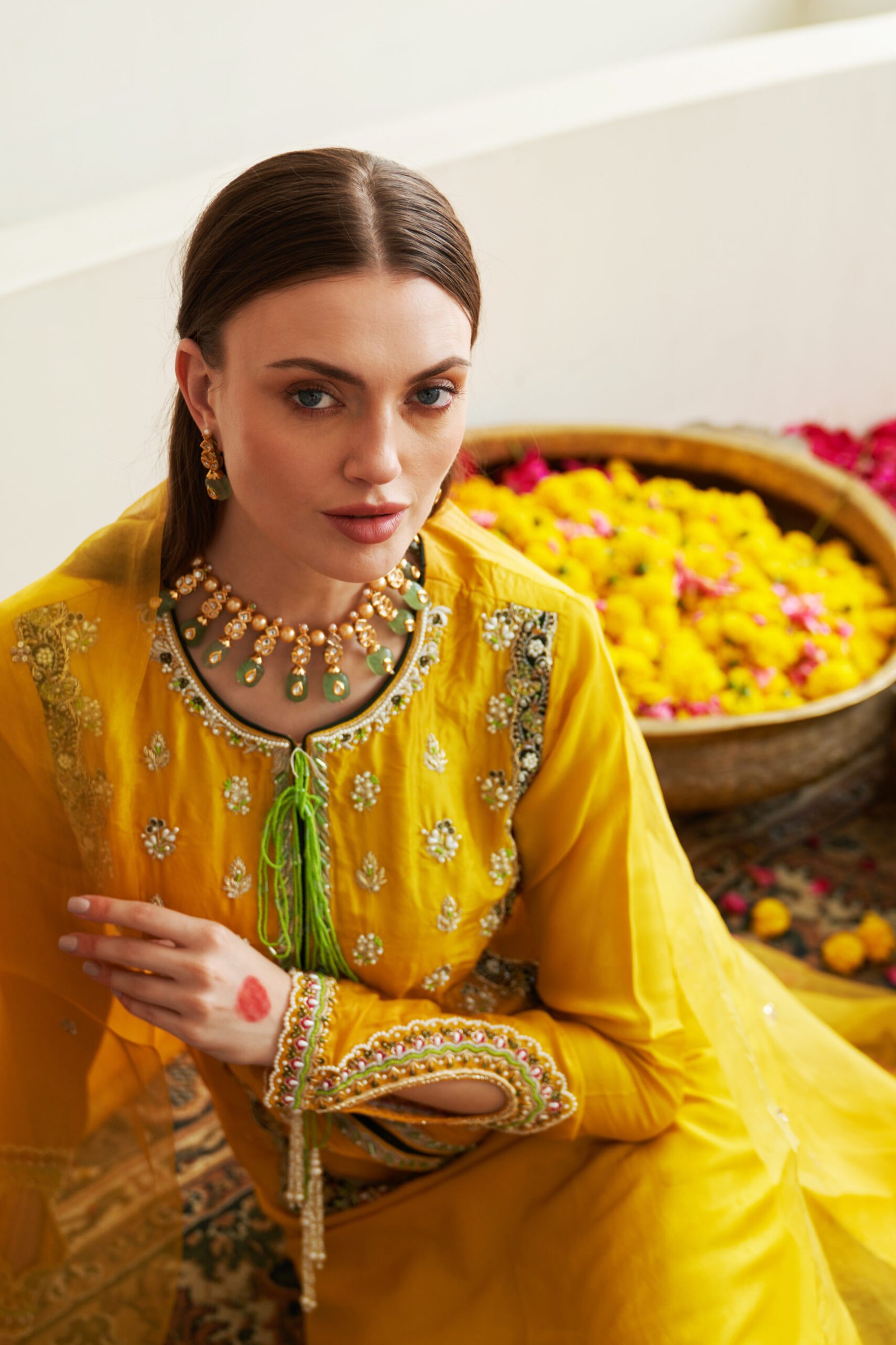 - Sleeves with Hand embroidered Beads, Pearls , Sequence & Zardozi Work.