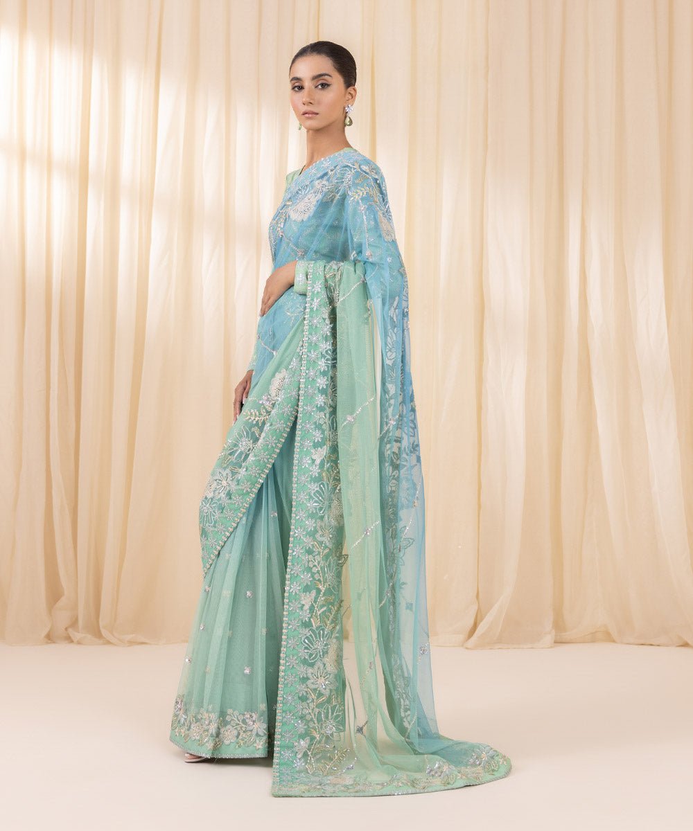 Printed Embroidered Blended Net Saree 3M